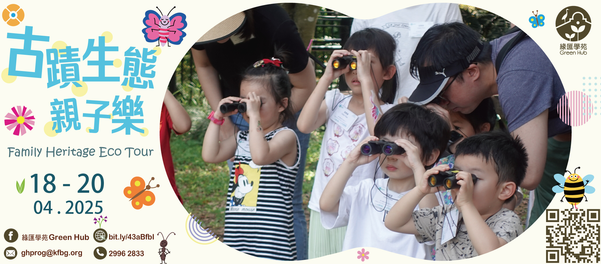 We will take an eco-journey through our heritage: get to know more than 20 species of Hong Kong animals and plants, view the adjacent egretry, feel the beautiful ecology of the city, engage in activities designed to inspire children's curiosity and creativity. Exciting activities include guided heritage eco-tour, animal shaped rice cake cooking and storytelling.