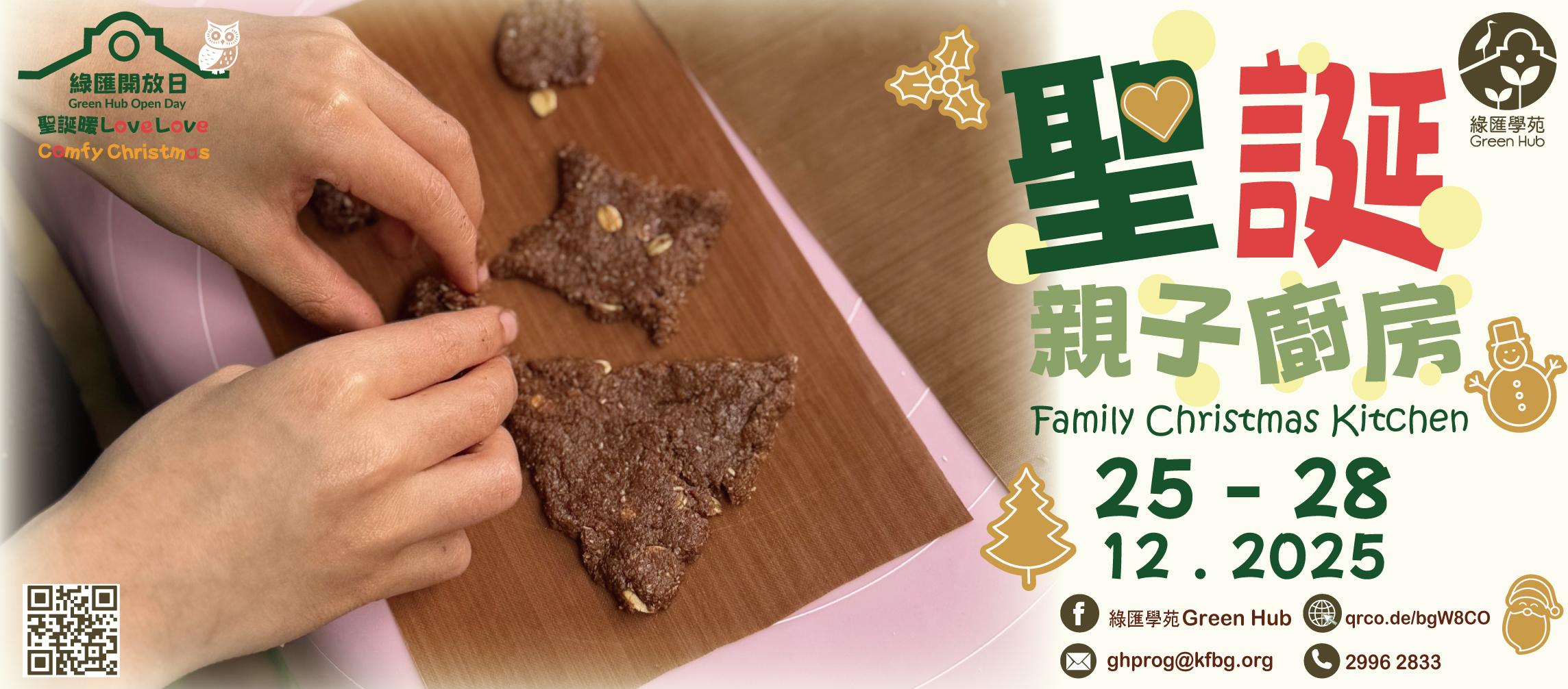 節日是與家人團聚的美好時刻,何不趁機與孩子一起在古蹟庭園的戶外廚房動動手,製作純素聖誕曲奇,享受低碳烹飪的樂趣呢?歡迎大家前來與我們一起分享聖誕節滋味。