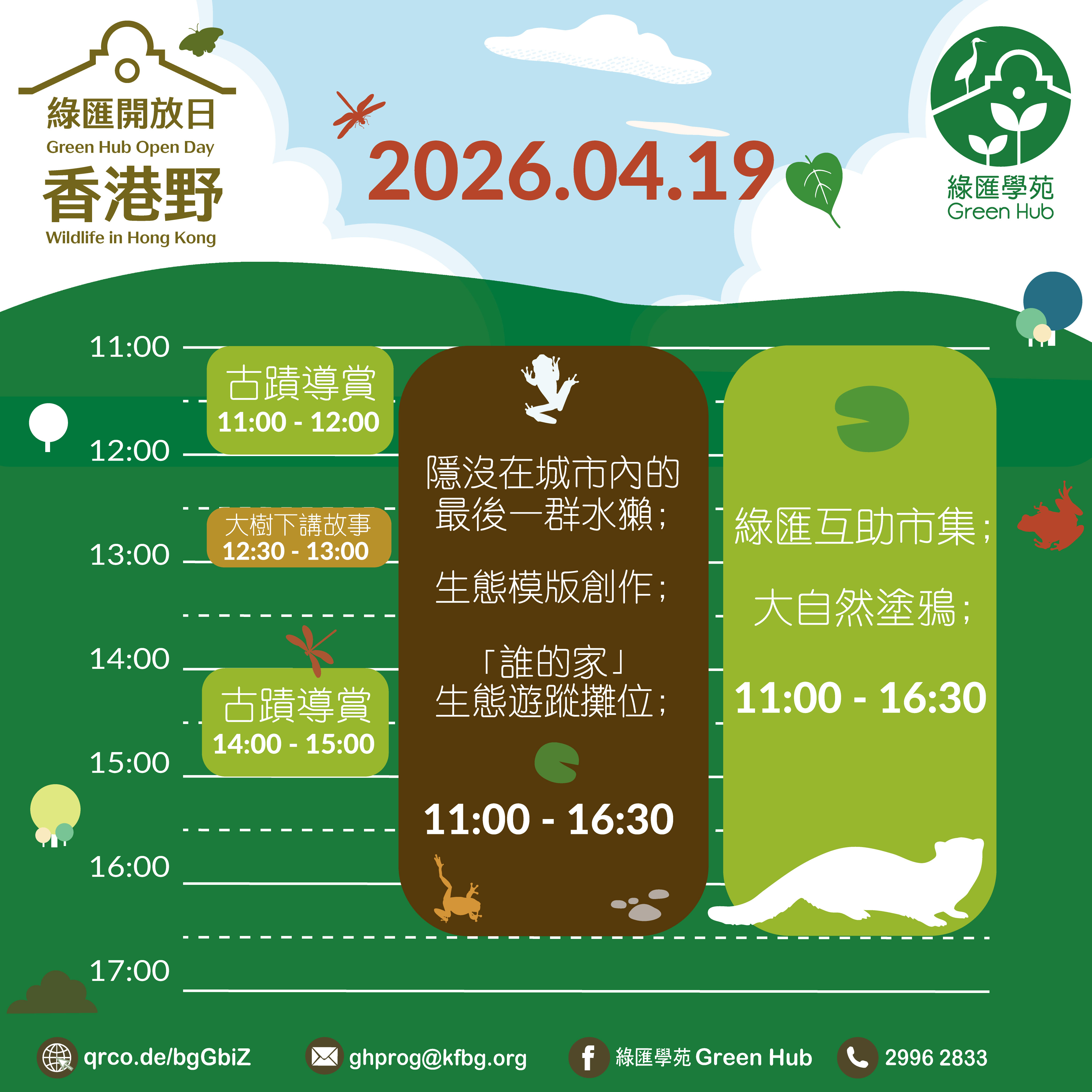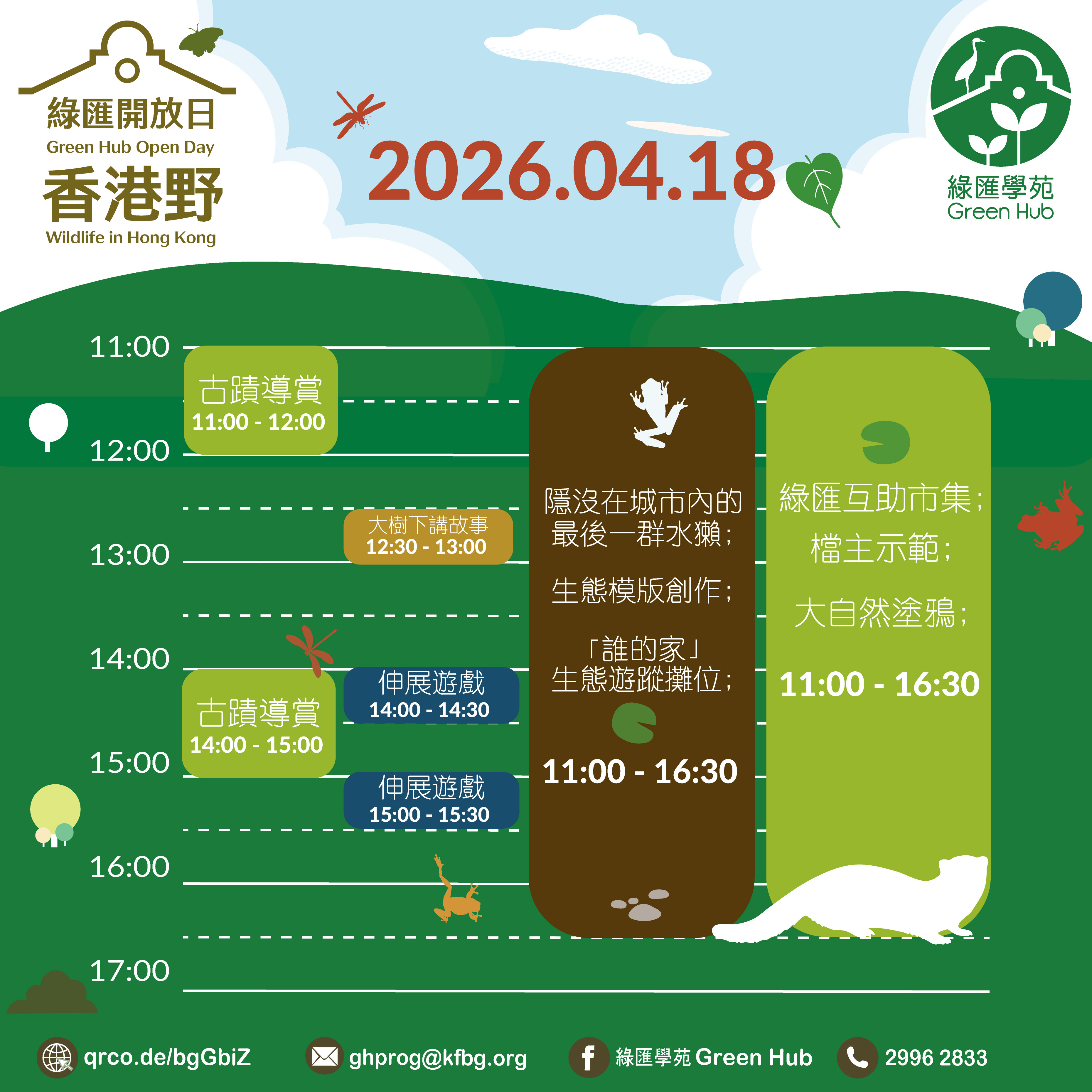 開放時間:10:00-17:00 (活動於早上11:00開始,最後入場時間 - 16:30)