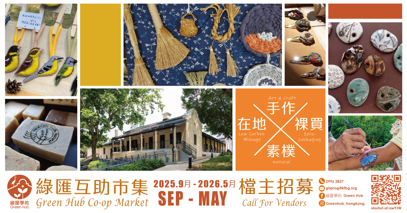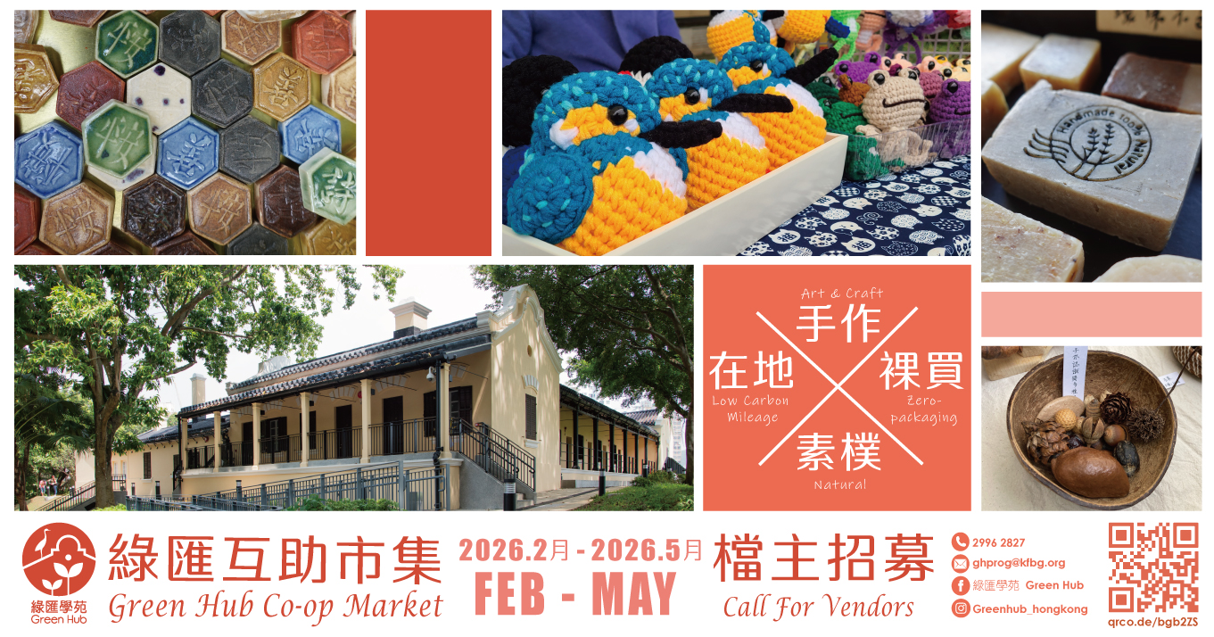 備註:市集設於本園園林中,讓參加者在自然幽美的環境下,感受永續生活選擇的美好。若遇上雨天,市集將移到有蓋遊廊進行。